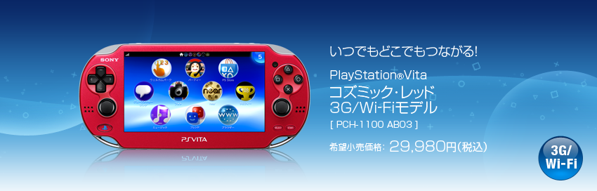 ![]() | PlayStationVita 3G/Wi-Fiモデル コズミック・レッド 限定版 (1100 AB03) PlayStation Vita ソニー・コンピュータエンタテインメント 2012-11-15 売り上げランキング : 91 Amazonで詳しく見る |
